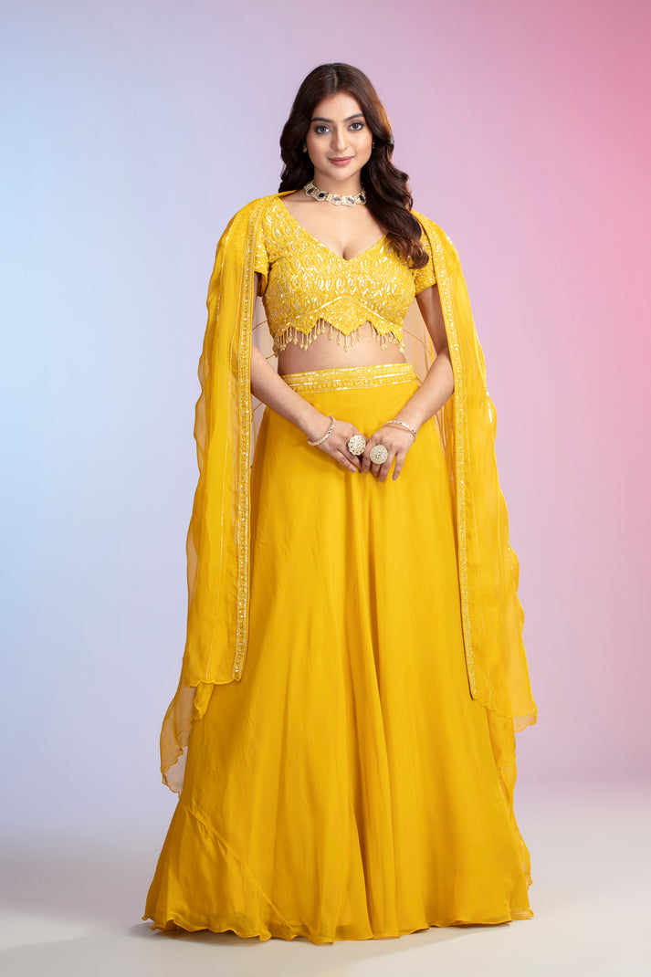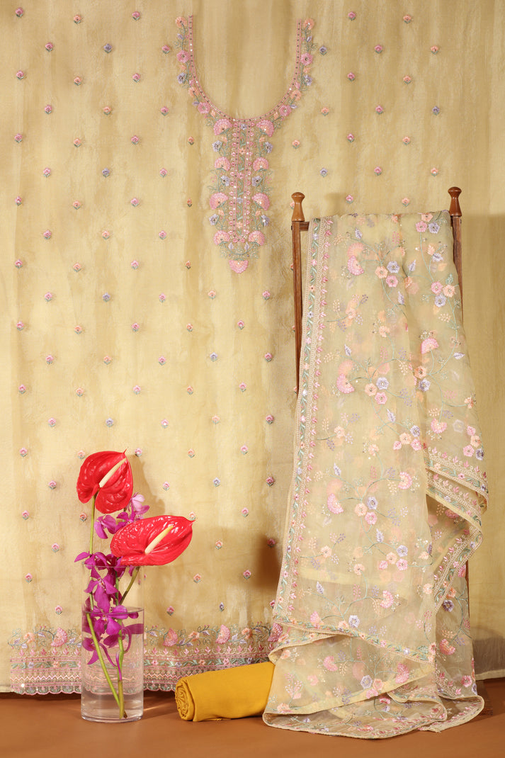 Yellow Organza & Kathan Silk Suit Set with Resham Embroidery
