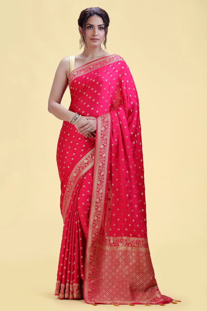 Now, if you believe that every festive occasion is an excuse to wear a saree, you’ll love the options Roopkala has. Festive sarees for Ganpati puja should have that perfect mix of tradition and comfort. The Rani Pink Dola Silk Saree is an absolute mood; bright, vibrant, and super graceful for those early morning rituals. And for evening aartis, the Emerald Green Banarasi Silk Saree gives you that luxurious festive vibe without making you feel overdressed.