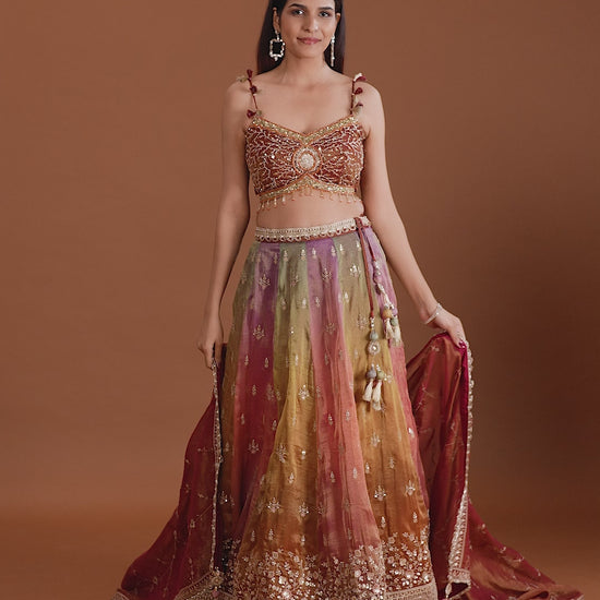 Maroon Tissue Lehenga Set with Mirror & Zardosi Work
